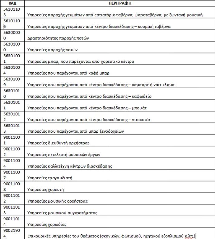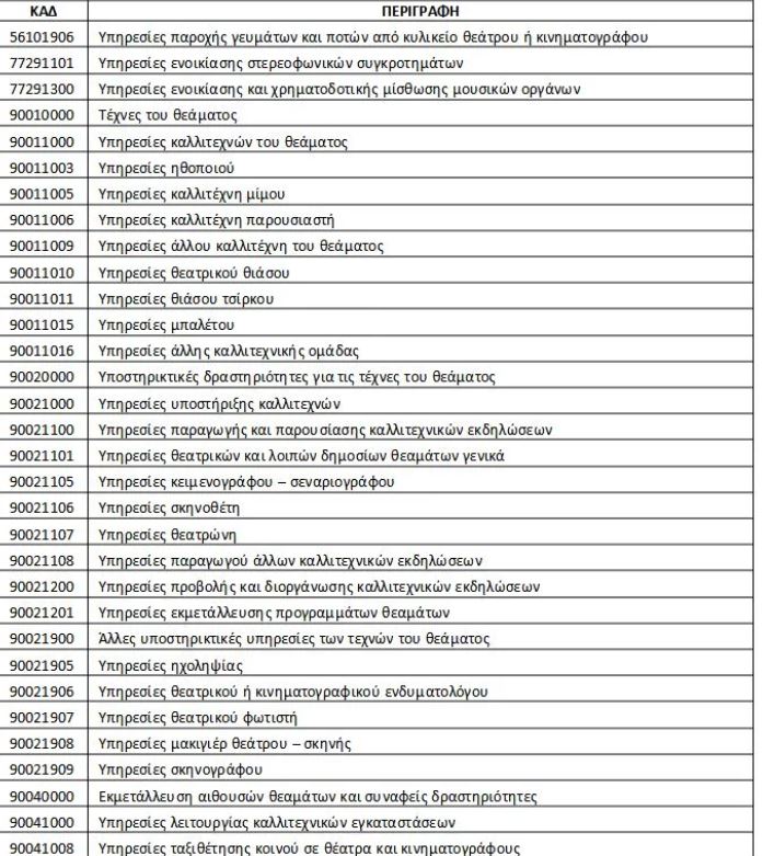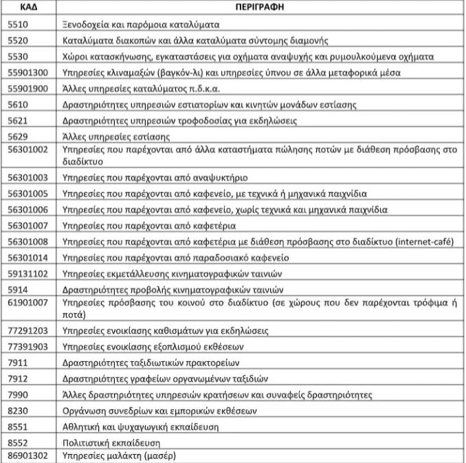 ΠΙΝΑΚΑΣ Α: ΚΑΔ επιχειρήσεων που δικαιούνται ήδη αναστολή εργασίας από 1/1/2022 σε ποσοστό 100%