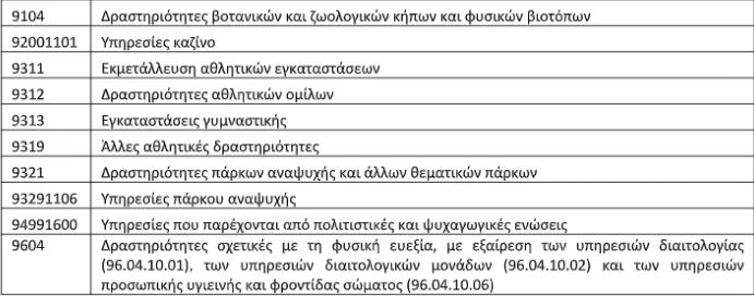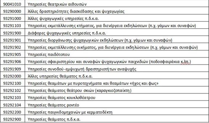 ΠΙΝΑΚΑΣ Β.1: Επιπλέον ΚΑΔ επιχειρήσεων που δικαιούνται αναστολή εργασίας από 14/1/2022 σε ποσοστό 100%