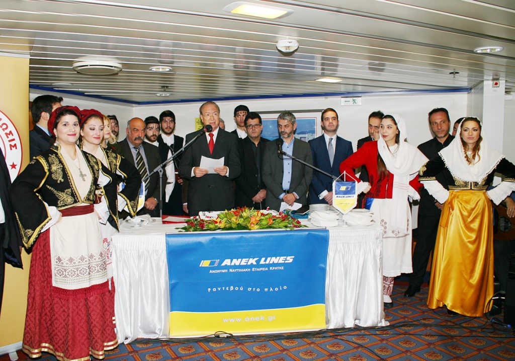 Εκπροσωπώντας την ΑΝΕΚ LINES, ο πλοίαρχος κάπτεν Ευστράτιος Καβρός, καλωσόρισε τους παρευρισκόμενους, με ευχές για τη νέα χρονιά, υπογραμμίζοντας πως η ΑΝΕΚ LINES ήταν, είναι και θα παραμείνει στο πλευρό όλων των Κρητών. Αξίζει να αναφερθεί ότι η εκδήλωση «ντύθηκε» από λαογραφικά δρώμενα, που επιμελήθηκε ο σκηνογράφος-λαογράφος κ. Ιωάννης Σκουλούδης.