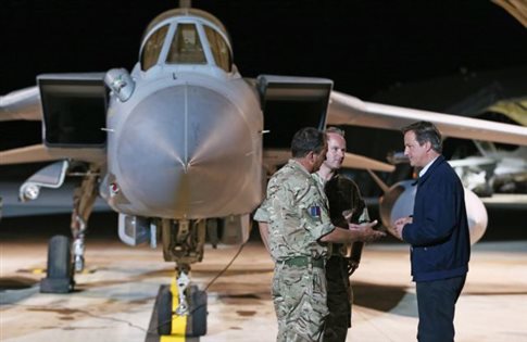 Από τη βάση στο Ακρωτήρι, ο Κάμερον ανακοίνωσε τα ξημερώματα της Παρασκευή ότι θα προστεθούν άλλα δύο μαχητικά Tornado στην ομάδα των μέχρι πρότινος έξι που επιχειρούσαν στο Ιράκ.