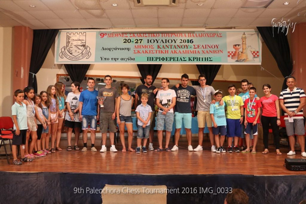 Στις ειδικές κατηγορίες και στην κατηγορία βετεράνων (άνω των 60 ετών) την 1η θέση πήρε ο Roberto Primavera από την Ιταλία, 2ος ο Detlef Tobor από τη Γερμανία και 3ος ο Norbert Veitsch από την Αυστρία. Στον αντίποδα ακριβώς ειδική βράβευση υπήρχε για τον μικρότερο σκακιστή τον 6χρονο Zherdev Radomir που ταξίδεψε από τη Ρωσία για να συμμετάσχει και ο οποίος εξέπληξε με την ποιότητα του παιχνιδιού του, ένα όνομα το οποίο θα ακούσουμε πολλές φορές στο μέλλον! Στην κατηγορία κάτω των 18 ετών την πρώτη θέση κατέκτησε ο Ανδρέας Κελίρης ο οποίος ήταν μόνιμα στις πρώτες θέσεις κυνηγώντας μία νόρμα GM που θα σήμαινε και τίτλο αλλά για την οποία ήθελε μισό βαθμό επιπλέον. Την 2η θέση κατέκτησε ο Αργύρης Παπαδόπουλος και 3ος ο Δημήτρης Τσεκμές. Στα κορίτσια την 1η θέση κατέκτησε η Ευαγγελία Πετράκη, 2η η Λιάπη Φιλίππα και 3η η Louise Adrian από τη Γαλλία. Στην κατηγορία κάτω των 16 ετών την 1η θέση κατέκτησε ο Θεόδωρος Καλογριδάκης, 2ος ο Νικόλας Θεοδώρου και 3ος ο Gallagher Daniel. Στα κορίτσια την 1η θέση κατέκτησε η Tukaeva Adeleya από την Ρωσία, 2η η Βοζινάκη Ανθή, και 3η η Φιλοξένη Δανάη. Στην κατηγορία κάτω των 14 ετών 1ος τερμάτισε ο Tomasi Albert από την Γαλλία, 2ος ο Χρήστος Κράλλης και 3ος ο Νίκος Γεωργακόπουλος. Στα κορίτσια την 1η θέση κατέκτησε η Zakharova Diana από την Ρωσία, 2η η Tukaeva Aida από την Ρωσία και 3η η Kseniya Badrakova από την Ρωσία. Στην κατηγορία κάτω των 12 ετών την 1η θέση κατέκτησε ο Adrian Leopold από την Γαλλία, 2ος ο Πατρελάκης Ευάγγελος και 3ος ο Γιώργος Παπαδημητράκης. Στα κορίτσια την 1η θέση κατέκτησε η Aksithi Eswaran από τις ΗΠΑ, 2η η Ευαγγελία Καραβιτάκη και 3η η Καντεράκη Μαρία Μυρτώ. 1ος τοπικός παίκτης ήταν ο Σταύρος Βλησίδης, 2ος ο Νίκος Γεωργιακάκης και 3ος ο Alex Brataleanu. Στην ομαδική βαθμολογία 1ος σύλλογος αναδείχτηκε η Σκακιστική Ακαδημία Χανίων. Αυτό που μπορούμε όμως να επισημάνουμε είναι τα οφέλη που έχουν οι παίκτες μας αγωνιζόμενοι σε μία τόσο υψηλή διοργάνωση. Πάρα πολλές οι εκπλήξεις πολλά τα θετικά αποτελέσματα εναντίον ισχυρών παικτών μαθαίνοντας έτσι να μη φοβούνται αντιμετωπίζοντας τους κατάματα και έχοντας εμπιστοσύνη στις δυνάμεις τους!