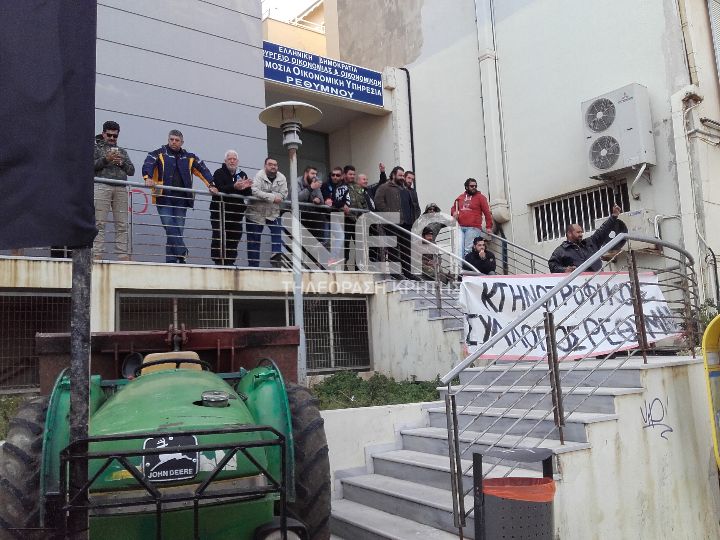 Στο μεταξύ αγρότες και κτηνοτρόφοι στο Ρέθυμνο χθες το μεσημέρι συγκεντρώθηκαν έξω από την αστυνομική διεύθυνση Ρεθύμνου προκειμένου να διαμαρτυρηθούν για τις συλλήψεις και τις προσαγωγές των συναδέλφων τους στην Αθήνα, χωρίς ωστόσο δημιουργηθεί κάποια ένταση. Η διαμαρτυρία ήταν συμβολική και λίγη ώρα αργότερα οι αγρότες επέστρεψαν έξω από την Εφορία.