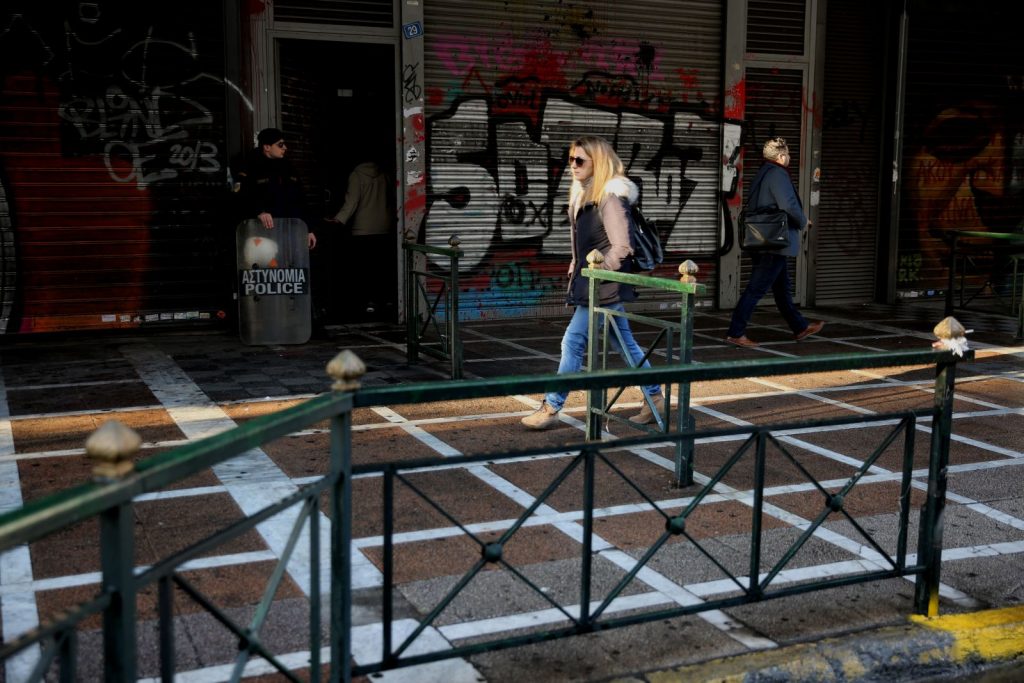 Αμέσως διακόπηκε η κυκλοφορία από την αστυνομία που απέκλεισε την περιοχή γύρω από το υπουργείο Εργασίας.