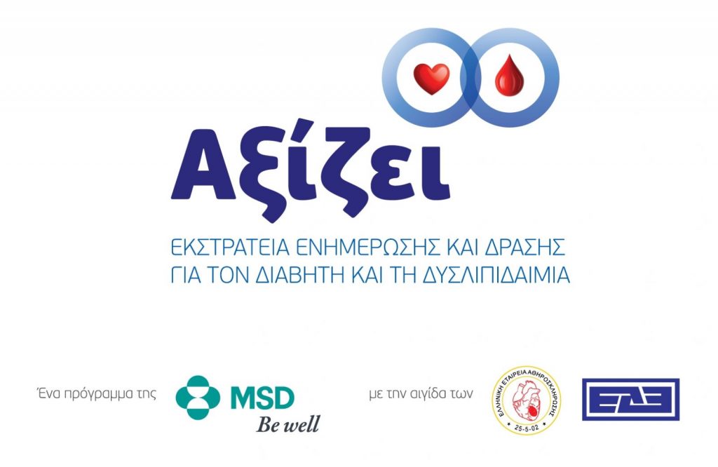 Το πρόγραμμα «ΑΞΙΖΕΙ» της MSD με την αιγίδα της Ελληνικής Διαβητολογικής Εταιρείας και της Ελληνικής Εταιρείας Αθηροσκλήρωσης περιλαμβάνει ένα ολοκληρωμένο και ευρύ φάσμα επικοινωνιακών ενεργειών μέσω παραδοσιακών και online μέσων, καθώς και δράσεις ενημέρωσης σε όλη την Ελλάδα, κατόπιν σχετικής ενημέρωσης του ΕΟΦ.