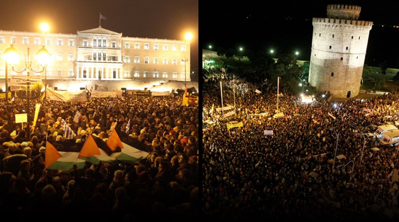 Αψηφώντας το κρύο χιλιάδες πολίτες της Αθήνας αλλά και όλων των ελληνικών πόλεων έστειλαν μήνυμα κατά της λιτότητας πλημμυρίζοντας δρόμους και πλατείες – Από Ελσίνκι μέχρι Ρώμη και από Νέα Υόρκη μέχρι Βερολίνο έφτασαν οι διαδηλώσεις υπέρ της Ελλάδας