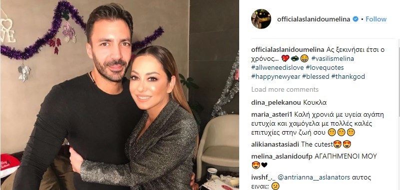 Η φωτογραφία τους δείχνει αγκαλιά και συνοδεύεται από τη λεζάντα «Ας ξεκινήσει έτσι ο χρόνος… #vasilismelina #allweneedislove #lovequotes #happynewyear #blessed #thankgod».
