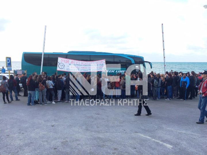Στο συμβολικό αποκλεισμό του σταθμού των ΚΤΕΛ στο Ρέθυμνο προχώρησαν το μεσημέρι φοιτητές της πανεπιστημιούπολης Γάλλου διεκδικώντας τη μείωση του εισιτηρίου και της κάρτας για τη μετακίνησή τους από και προς τις σχολές τους.