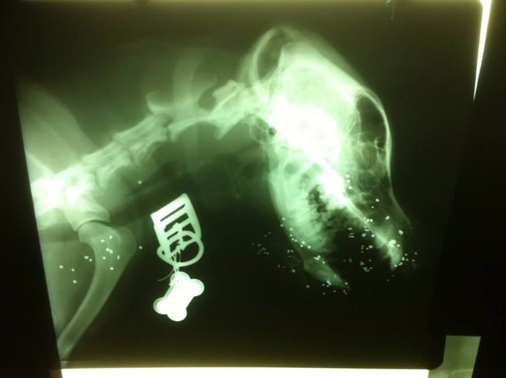 Η ακτινογραφία έδειξε τα σκάγια διάσπαρτα στο κεφάλι του ζώου.