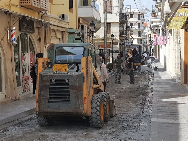 Τα έργα στην Αρκαδίου, που ξεκίνησαν αρχές Μαρτίου, υποτίθεται ότι θα πρέπει να ολοκληρωθούν μέχρι την έναρξη της νέας τουριστικής σεζόν, ώστε να μην διαταραχθεί η λειτουργία της αγοράς.