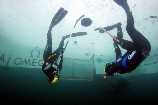 Το χόκεϋ κάτω από τον πάγο είναι ένα καινούριο άθλημα που γεννήθηκε στην Αυστρία και είναι αρκετά δημοφιλες στους φίλους των καταδύσεων και των extreme sports.