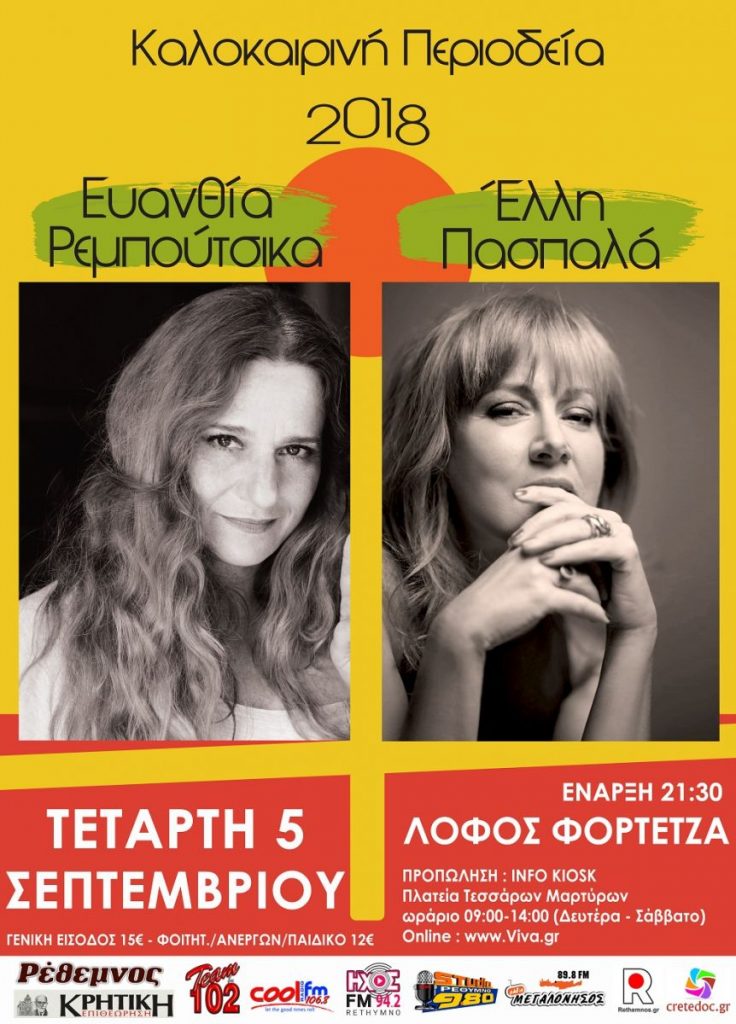 Ευανθία Ρεμπούτσικα και Έλλη Πασπαλά την Τετάρτη 5 Σεπτεμβρίου στο Ρέθυμνο