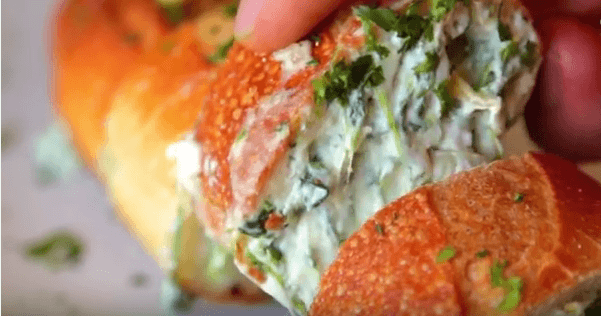 Εύκολο πεντανόστιμο ψωμί γεμιστό με τυρια και σκόρδο!