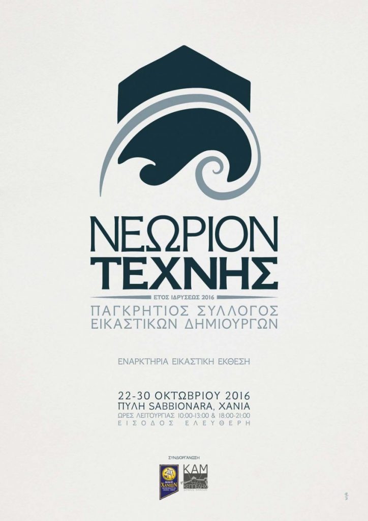 Ο Παγκρήτιος Σύλλογος Εικαστικών Δημιουργών ΝΕΩΡΙΟΝ ΤΕΧΝΗΣ σε συνδιοργάνωση με τον ΔΗΜΟ ΧΑΝΙΩΝ & ΚΗΠΠΕΔΗΧ-ΚΑΜ παρουσιάζουν την εναρκτήριο έκθεση των μελών του. Τα εγκαίνια της έκθεσης θα πραγματοποιηθούν το Σάββατο 22 Οκτωβρίου 2016 στην Πύλη Sabbionara – Κουμ Καπί στις 8.00 μ.μ.