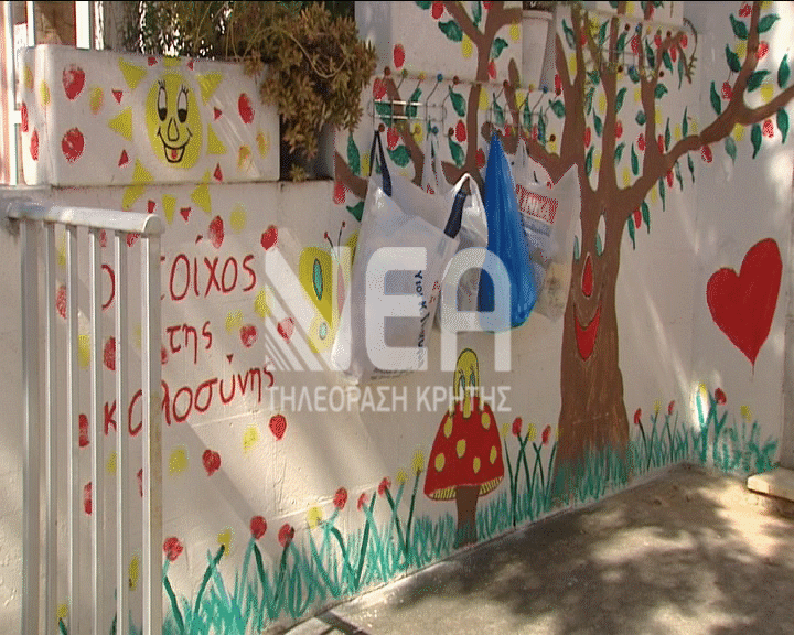 Μετά τη δημιουργία τοίχων προσφοράς σε σχολεία του Ηρακλείου και των Χανίων, ένας νέος “Τοίχος της Καλοσύνης” φτιάχτηκε και σε ιδιωτικό φροντιστήριο ξένων γλωσσών με στόχο να αφήνουν περισσότεροι πολίτες στα κρεμαστάρια του  ρούχα σε καλή κατάσταση, παπούτσια, κουβέρτες, σεντόνια, παιχνίδια, είδη μακράς διάρκειας και φαγητό, για τους συνανθρώπους μας που τα χρειάζονται.