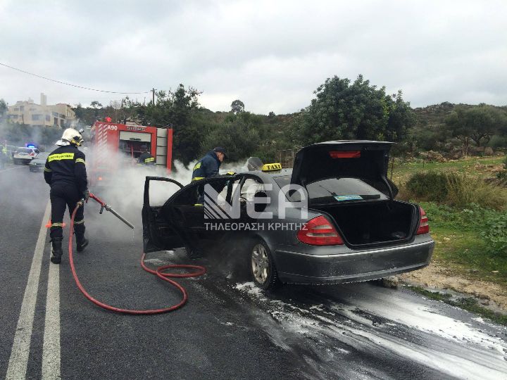 Όπως φαίνεται και στις φωτογραφίες του neatv.gr, ένα ταξί που βρισκόταν εν κινήσει, πιθανώς λόγω μηχανικής βλάβης ο οδηγός που αντιλήφθηκε το πρόβλημα στο όχημά του, σταμάτησε το όχημα στην άκρη του δρόμου ενώ αυτό τυλίχθηκε στις φλόγες.