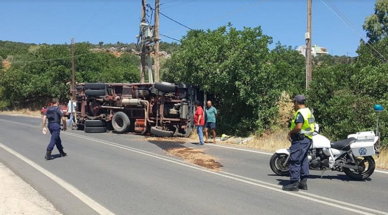 Φορτηγό τούμπαρε στον δρόμο προς Κριτσά