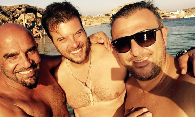 Γιάννης Ζουγανέλης, Λάμπης Λιβιεράτος, Αντώνης Ρέμος… τρεις καλοί φίλοι και ανέμελες στιγμές στο νησί των ανέμων.