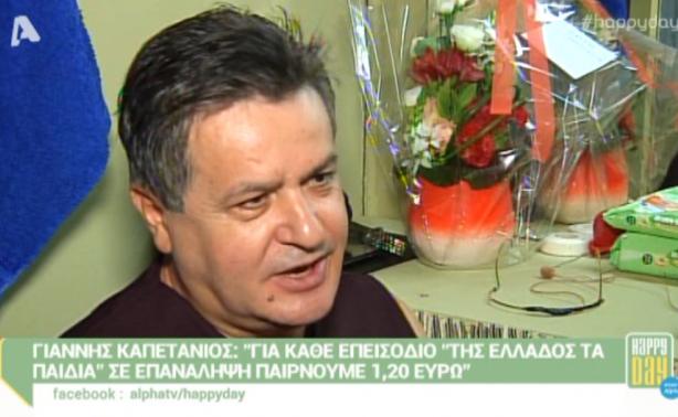 Πόσα χρήματα παίρνει από την επανάληψη της σειράς "Της Ελλάδος τα παιδιά"; «Έχω κάνει πράγματα που κι εγώ δεν τα πιστεύω που τα βλέπω. Σίριαλ πολλά…», δήλωσε ο Γιάννης Καπετάνιος.