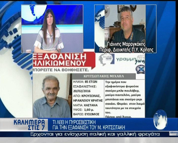 Καλημέρα στις 7: Άφαντος ο Μ. Κριτσωτάκης. Σταμάτησε τις έρευνες η ΕΜΑΚ, συνεχίζει η αστυνομία