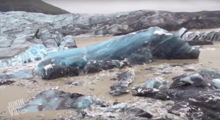 Ένα τεράστιο κομμάτι πάγου αποκολλάται, μετά από εκατοντάδες χρόνια, από εκατοντάδες χρόνια από ένα παγόβουνο, λόγω της αύξησης της θερμοκρασίας του πλανήτη.