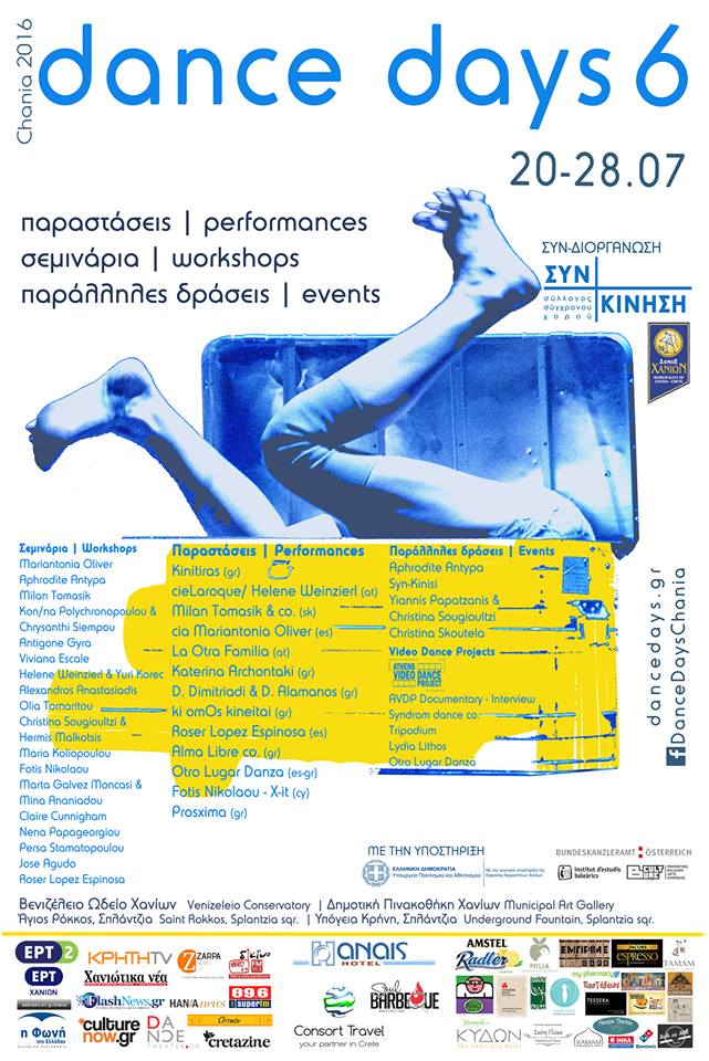 Ανοίγει την Τετάρτη 20 Ιουλίου 2016 η αυλαία για το Διεθνές Φεστιβάλ Χορού “Dance Days 6”, έναν θεσμό, που υλοποιείται για έκτη συνεχή χρονιά στα Χανιά, αποκτώντας μεγάλη απήχηση σε ολόκληρη την Ελλάδα.