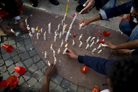 Με δάκρυα στα μάτια μετανάστες έγραψαν σε τοίχους και βράχους μηνύματα για τα παιδιά, τους φίλους και τους γονείς που έχασαν, και στάθηκαν αγκαλιασμένοι μπροστά στην αποβάθρα εκείνη όπου έναν χρόνο πριν είχαν τοποθετηθεί πλάι-πλάι οι μαύρες σακούλες με τις σορούς των συντρόφων τους στο ταξίδι που κατέληξε σε τραγωδία.