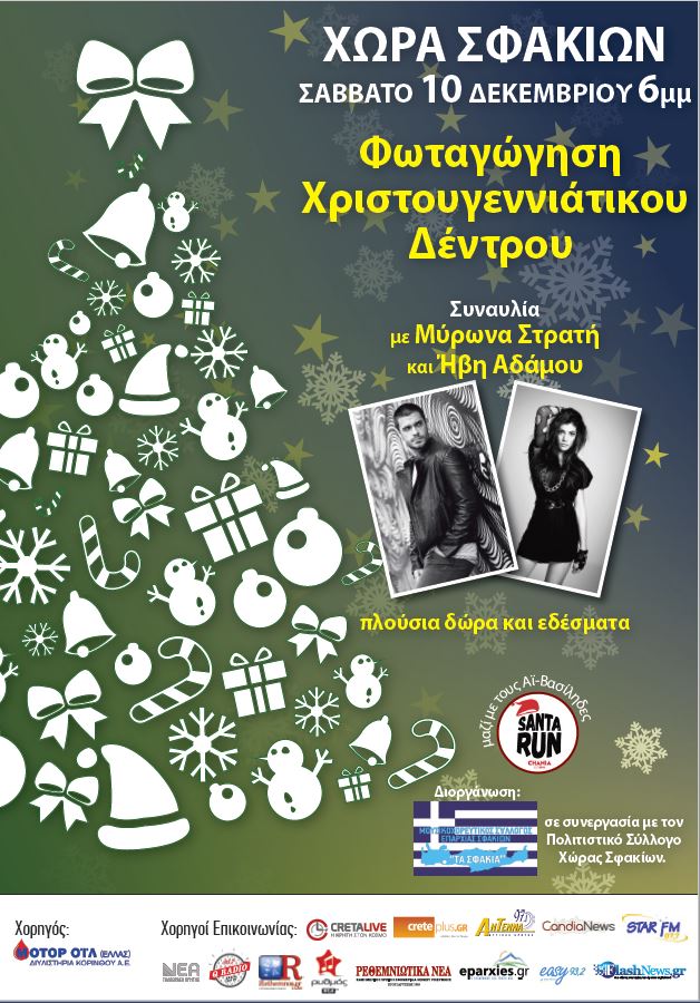 ερχόμενο Σάββατο 10 Δεκεμβρίου στις 6 το απόγευμα στην πλατεία της Χώρας Σφακίων.