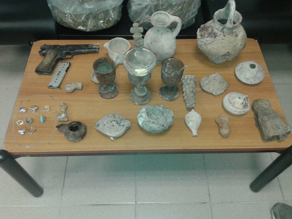 Επιπλέον, βρέθηκαν και κατασχέθηκαν πιστόλι και αντικείμενα αρχαιολογικής σημασίας τα οποία εμπίπτουν στο νόμο περί προστασίας αρχαιοτήτων και εν γένει της πολιτιστικής κληρονομιάς
