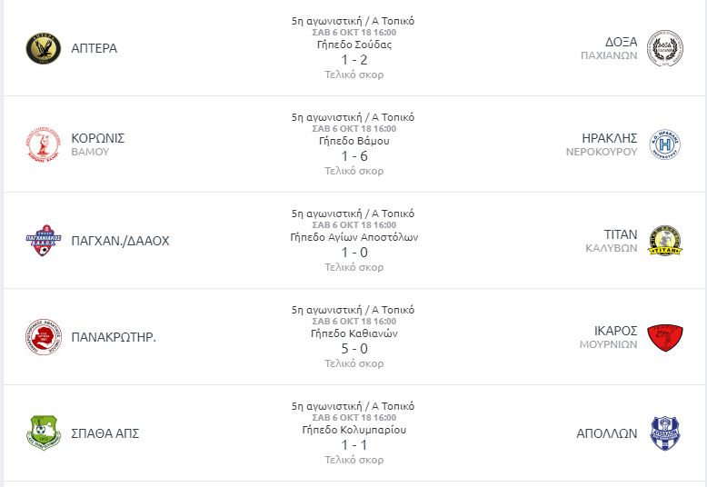 Δείτε τα αποτελέσματα των αγώνων του Σαββάτου όπου ξεχώρισε η ισοπαλία του Απόλλωνα στο Κολυμπάρι, αποτέλεσμα που έφερε μόνο στην κορυφή τον Πανακρωτηριακό