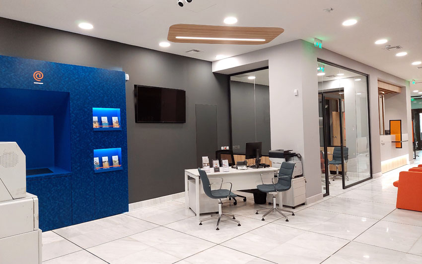 Για το σκοπό αυτό έχουν διαμορφωθεί διακριτοί χώροι μέσα στο κατάστημα που υποστηρίζουν από τη μία τις παραδοσιακές τραπεζικές εργασίες και από την άλλη τη δυνατότητα αυτοεξυπηρέτησης του πελάτη με ψηφιακά μέσα, ενώ εξειδικευμένο προσωπικό  παρέχει συμβουλευτικές υπηρεσίες  ακόμη και απομακρυσμένα μέσω video conference.