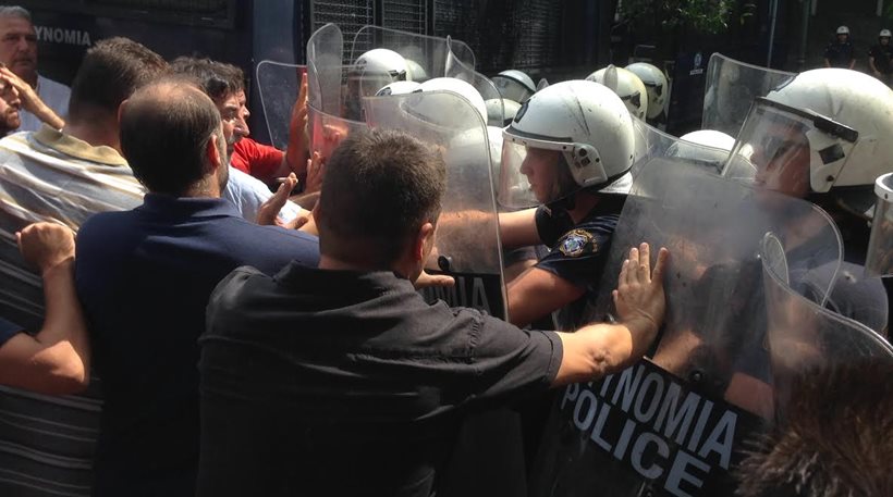 Ένταση επικράτησε όταν οι εργαζόμενοι επιχείρησαν να περάσουν και να κατευθυνθούν προς το Μέγαρο Μαξίμου όπου δέχθηκαν σπρωξίματα από την Αστυνομία, την στάση της οποίας κατήγγειλαν.