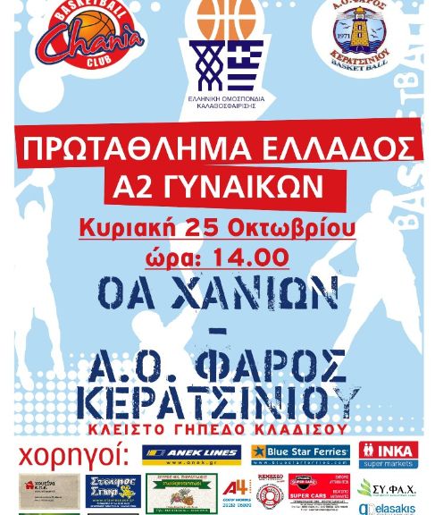 O.Α.Χανίων: Κυριακή (25/10) στις 2 το μεσημέρι με Φάρο Κερατσινίου