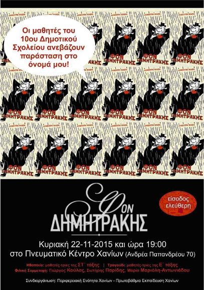 Η Περιφερειακή Ενότητα Χανίων, η Δ/νση Πρωτοβάθμιας Εκπαίδευσης Ν. Χανίων και το 10ο Δημοτικό Σχολείο Χανίων ανεβάζουν την θεατρική παράσταση του Δημήτρη Ψαθά: «Φον Δημητράκης».