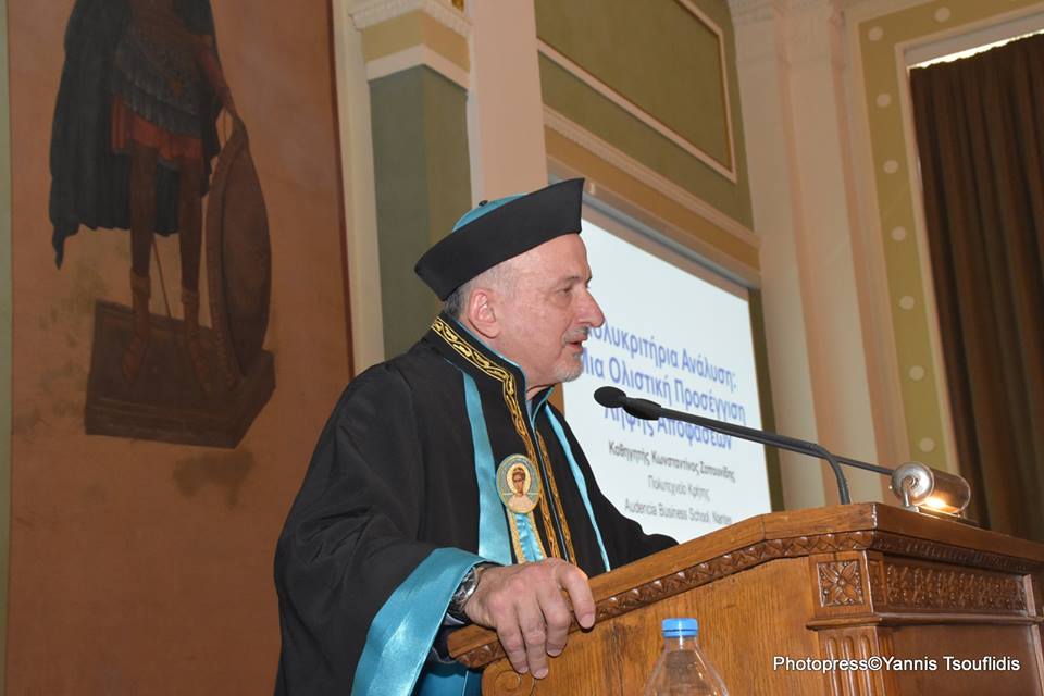 Μετά την αναγόρευσή του, ο κ. Κ. Ζοπουνίδης παρουσίασε ομιλία με θέμα: "Πολυκριτήρια Ανάλυση: Μία Ολιστική Προσέγγιση Λήψης Αποφάσεων".