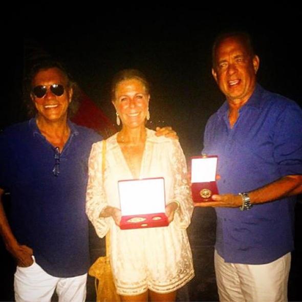 Τον Τομ Χανκς και τη σύζυγό του, Ρίτα Γουίλσον βράβευσε ο δήμαρχος Μαραθώνα Ηλία Ψινάκης απονέμοντας τους τα «Παράσημα της Λεγεώνας του Μαραθώνα».