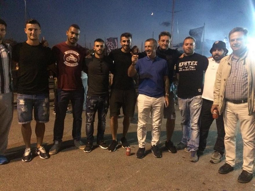 Ο Μάριος Ογκμποε, ο Δημήτρης Κομεσίδης, ο Νίκος Βρεττός και ο Κέβι Χίσι, έδωσαν το «παρών» και εντυπωσιάστηκαν απο την ατμόσφαιρα, που ….θύμιζε Γεντί Κουλέ, με καπνογόνα, συνθήματα για τον ΟΦΗ και τραγούδια.