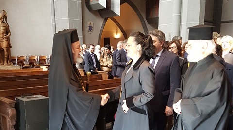 Λαμπρή η δοξολογία στον καθεδρικό ναό πλησίον του δημαρχείου για ολίγους και εκλεκτούς πολιτικούς και οικονομικούς παράγοντες της Κεντρικής Ευρώπης, που προηγήθηκε της εκδήλωσης στην όχθη του Ρήνου.