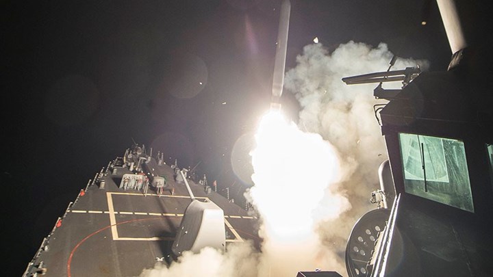 Οι 59 πύραυλοι “Τόμαχοκ” εκτοξεύτηκαν από τα πυραυλοφόρα καταδρομικά πλοία USS Porter και USS Ross που πλέουν ανατολικά της Μεσογείου.