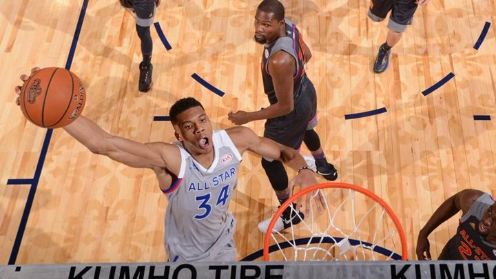 O Γιάννης Αντετοκούνμπο μετά την πρώτη του συμμετοχή σε All Star Game, στο οποίο μάλιστα αναδείχθηκε πρώτος σκόρερ της ομάδας της Ανατολής, φωτογραφήθηκε μαζί με την οικογένεια του στο κέντρο του γηπέδου.