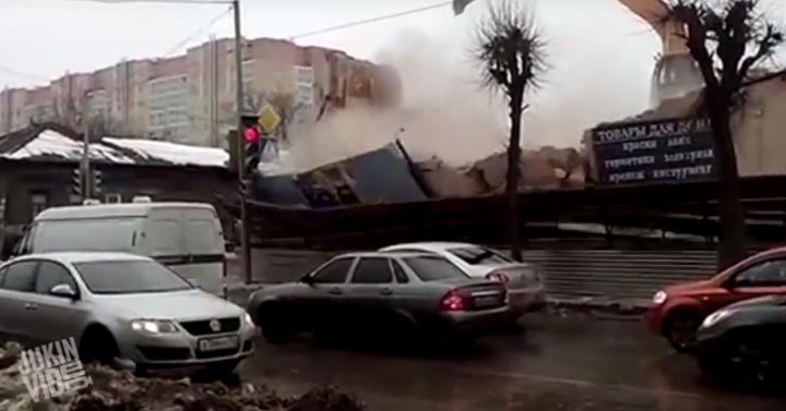 Ευτυχώς, δεν τραυματίστηκε κανείς, παρά το ότι μέρος του κτιρίου που κατεδαφίστηκε έπεσε στο δρόμο, πάνω σε αυτοκίνητα.