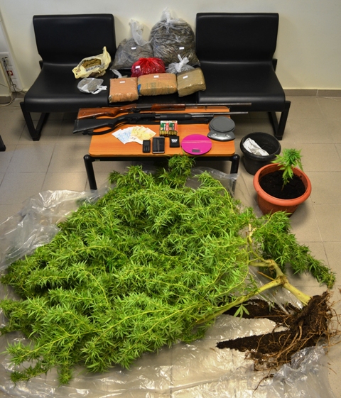 Κατασχέθηκαν, μεταξύ άλλων περισσότερα από 5 κιλά κάνναβης, δενδρύλλια κάνναβης και κυνηγετικά όπλα και φυσίγγια