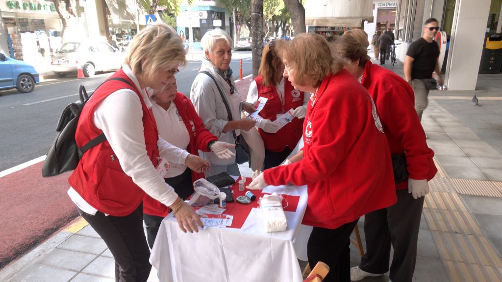 Οι εθελοντές του ερυθρού σταυρού βρέθηκαν μπροστά από το Δημαρχείο, την οδό Τζανακάκη και τη Χάληδων και στον κόσμο που έβλεπαν ζάχαρο πάνω από 120 συνιστούσαν μια επιπλέον εξέταση και μία επίσκεψη στον παθολόγο.
