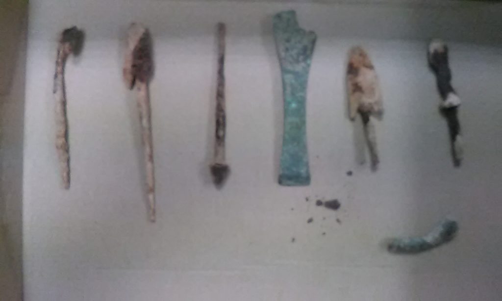 Ειδικότερα, χθες (08.10.2018) το μεσημέρι από αστυνομικούς της ανωτέρω Υπηρεσίας, πραγματοποιήθηκε έρευνα στην οικία του 59χρονου και σε περιβάλλοντα χώρο, κατά τη διάρκεια της οποίας βρέθηκαν και κατασχέθηκαν πέντε αιχμές βολών και τμήματά τους, χάλκινο αντικείμενο και μεταλλικό αντικείμενο (κράμα μετάλλου), τα οποία εμπίπτουν στη Νομοθεσία «Περί προστασίας Αρχαιοτήτων»