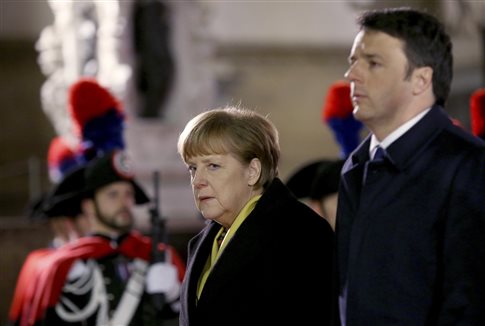 Να καθησυχάσει τη γερμανίδα καγκελάριο, εν όψει της συνάντησής του αύριο, Τρίτη, με τον Αλέξη Τσίπρα, πως η Ιταλία δεν πρόκειται να ηγηθεί μιας μεσογειακής συμμαχίας με τη συμμετοχή της Ελλάδας και της Ισπανίας, επιχείρησε ο Ματέο Ρέντσι, στην τηλεφωνική επικοινωνία που είχε την Κυριακή με την Ανγκελα Μέρκελ, σύμφωνα με τον ιταλικό Τύπο. Εν τω μεταξύ και ο ισπανός υπουργός Οικονομικών εμφανίστηκε κατηγορηματικά αντίθετος στην ιδέα «να αλλάξουν οι κανόνες» της ΕΕ και να υπάρξει ανταπόκριση στα αιτήματα της Ελλάδας.