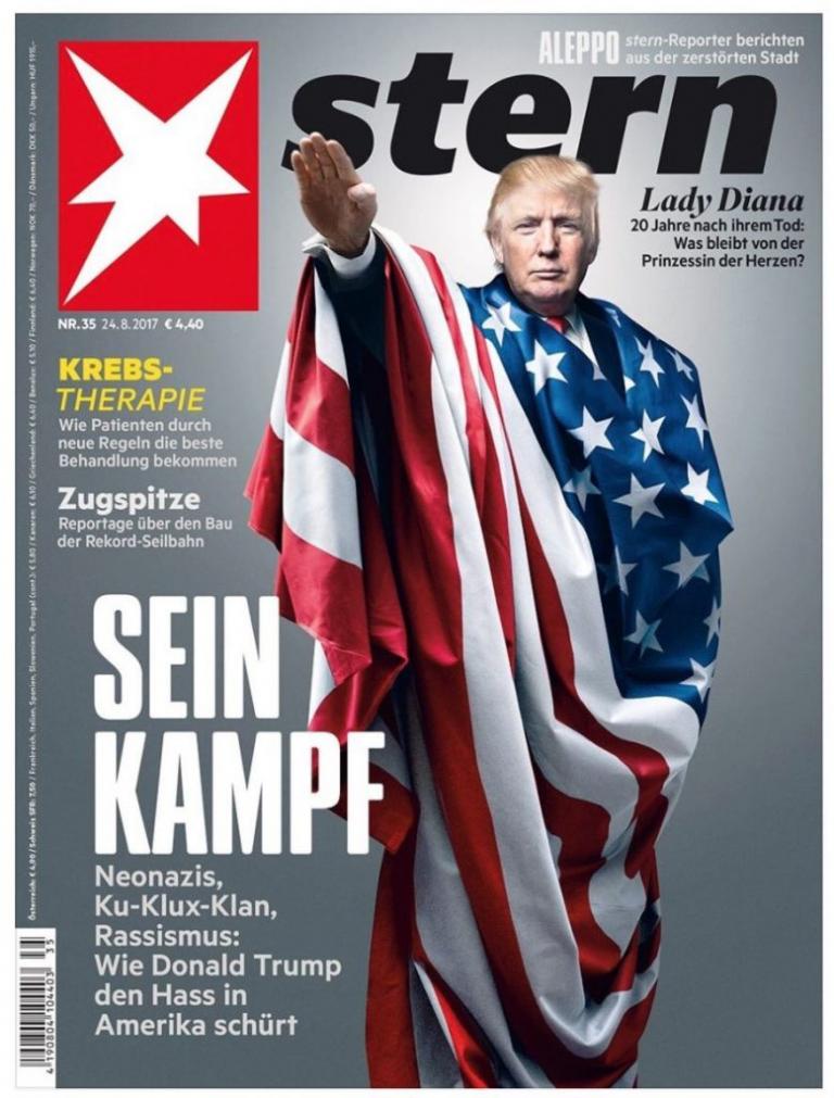Μόλις λίγες ώρες αφού η Άνγκελα Μέρκελ ζήτησε σεβασμό για τον πρόεδρο των ΗΠΑ, έρχεται το εξώφυλλο του περιοδικού Stern να παρουσιάσει τον Ντόναλντ Τραμπ ως Αδόλφο Χίτλερ!