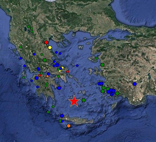 Ταρακουνήθηκε το Αιγαίo και η Κρήτη από την ισχυρή δόνηση 4,9 Ρίχτερ, που σημειώθηκε στις 6.53 το απόγευμα της Τετάρτης ανοιχτά της Μήλου.