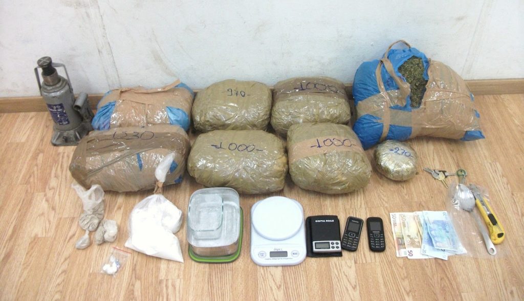 Κατά τη διάρκεια του ελέγχου βρέθηκαν και κατασχέθηκαν 19 αυτοσχέδιες συσκευασίες κοκαΐνης συνολικού βάρους 14,4 γραμμαρίων και δύο κινητά τηλέφωνα.