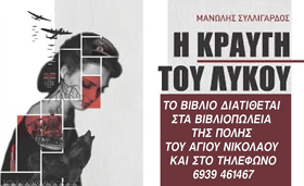 Με την συνεργασία του δήμου Οροπεδίου Λασιθίου και τον εκδοτικό οίκο «Αδελφοί Βλάσση» θα πραγματοποιηθεί εκδήλωση όπου θα παρουσιαστεί το βιβλίο του Μανώλη Συλιγάρδου με τίτλο «Η κραυγή του Λύκου» με ιστορικό περιεχόμενο. Η εκδήλωση θα γίνει σήμερα Τετάρτη 10 Αυγούστου στις 8 το βράδυ στην αίθουσα Αντωνίου Βορεάδη στο δημαρχείο Οροπεδίου Λασιθίου.