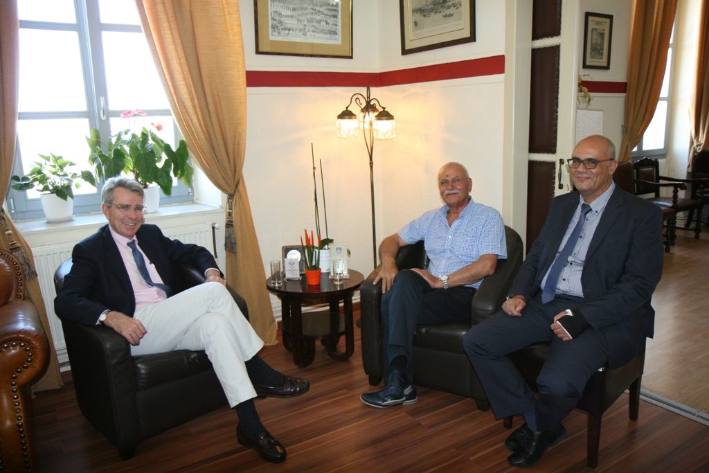 Τέλος, ο Αντιπεριφερειάρχης ευχήθηκε στον Πρέσβη καλή διαμονή στο νησί μας, και οι δύο άντρες αντάλλαξαν αναμνηστικά δώρα.