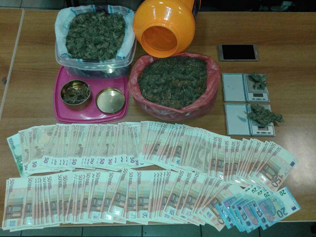 Βρέθηκαν και κατασχέθηκαν περισσότερα από 500 γραμμάρια κάνναβης, 2 ζυγαριές ακριβείας και το χρηματικό ποσό των 8.500 ευρώ